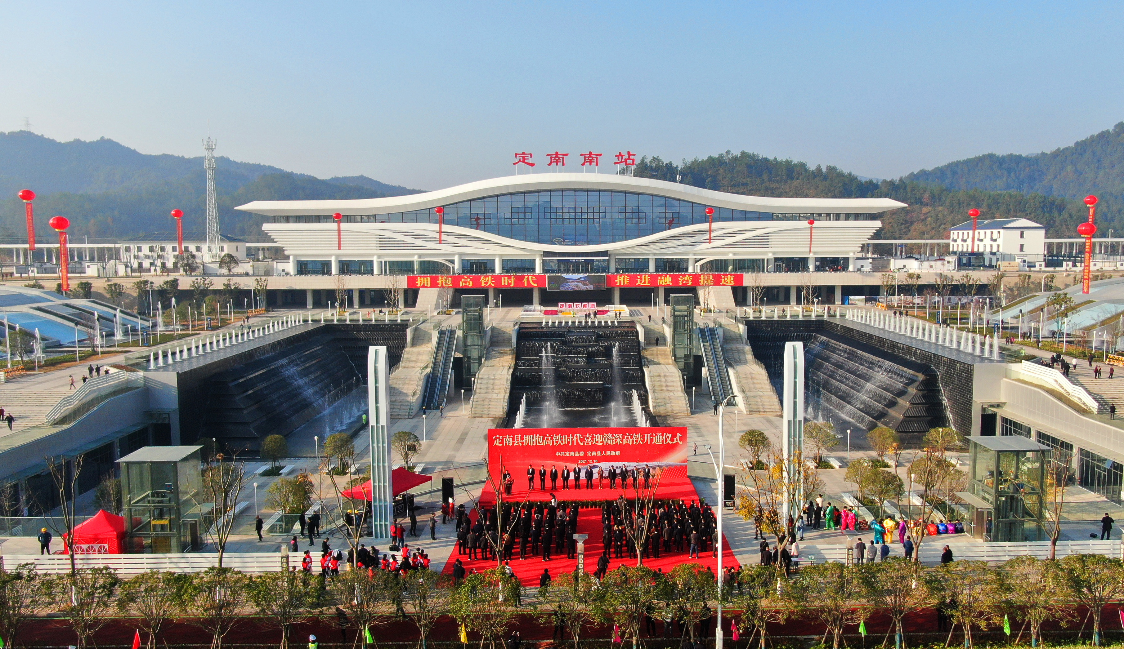 中冶交通承建的站前廣場(chǎng)及路網(wǎng)工程項(xiàng)目采用了“九曲東江源,云臺(tái)贛南門(mén)”的整體設(shè)計(jì)構(gòu)思,將水元素完美地融合在整體建筑中。項(xiàng)目總占地面積126畝,其中廣場(chǎng)建筑面積24000㎡,市政干路總長(zhǎng)2880m、站前廣場(chǎng)地面道路總長(zhǎng)766m、地下人行通道總長(zhǎng)153m、落客匝道連接線(xiàn)總長(zhǎng)727m。該項(xiàng)目既是實(shí)現(xiàn)高鐵新區(qū)建設(shè)目標(biāo)的導(dǎo)引性、標(biāo)志性工程,也同步擔(dān)當(dāng)了定南南站的交通樞紐工程。